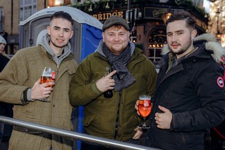 As we speak more and more lots are pulling up outside the Hawley Arms and under the Camden Town rail bridge. Horse are being unhitched from carts and tethered to lampposts, railings, street signs, cycle racks and other handy street furniture, and are being given bundles of hay to chomp on. The rain has also stopped. Some of their riders go off back to Camden High Street and the market to buy takeaway street food, others have flasks and packed lunches, and some are starting to fill the already busy Hawley Arms, whose three bar-tenders are working heroically to serve the sudden unexpected extra guests that line the bar four-deep. The atmosphere is boisterous, friendly and very very noisy. People are helping to get the buses through – re-positioning the carts and horses to make way if necessary - a lone police officer in a baseball cap turns up and starts directing traffic, and a traffic warden on a moped stops, looks around at all the horses and carts, bursts out laughing, and rides on.