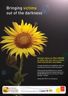 As part of Domestic Abuse Awareness Week, the ‘Bringing victims out of the darkness’ campaign is being launched by the County Community Safety Unit (CCSU), a joint unit between Hertfordshire Constabulary and Hertfordshire County Council. It is aiming to highlight the specialist services and support available for victims, especially those who are in communities where the reporting of domestic abuse is uncommon because it is a taboo subject.