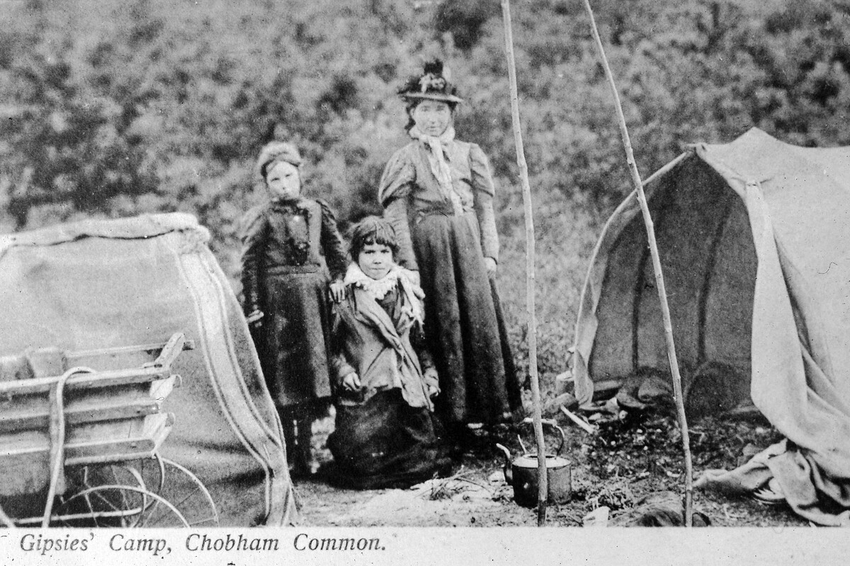 (Top photograph: Gypsies Camp Chobham Common dated 1890s (c) Surrey History Centre collection number 6791/1/3)
